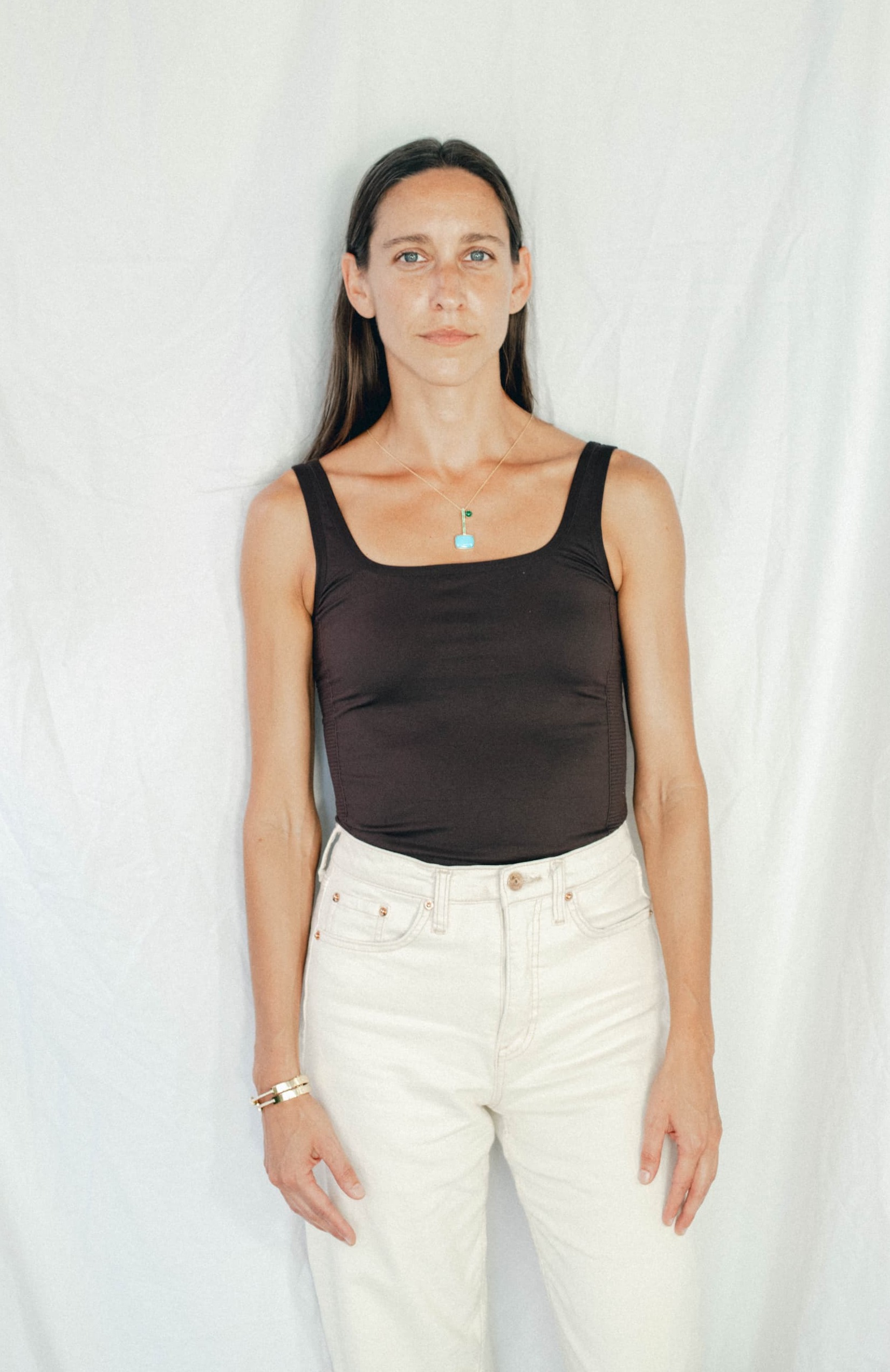Last but not least, Molly Brandt wearing the custom piece that sparked the collection. Molly's Clé was designed around a Smoked Quartz gifted by her parents, and complemented with Emerald, Lapis Lazuli and Rubies.