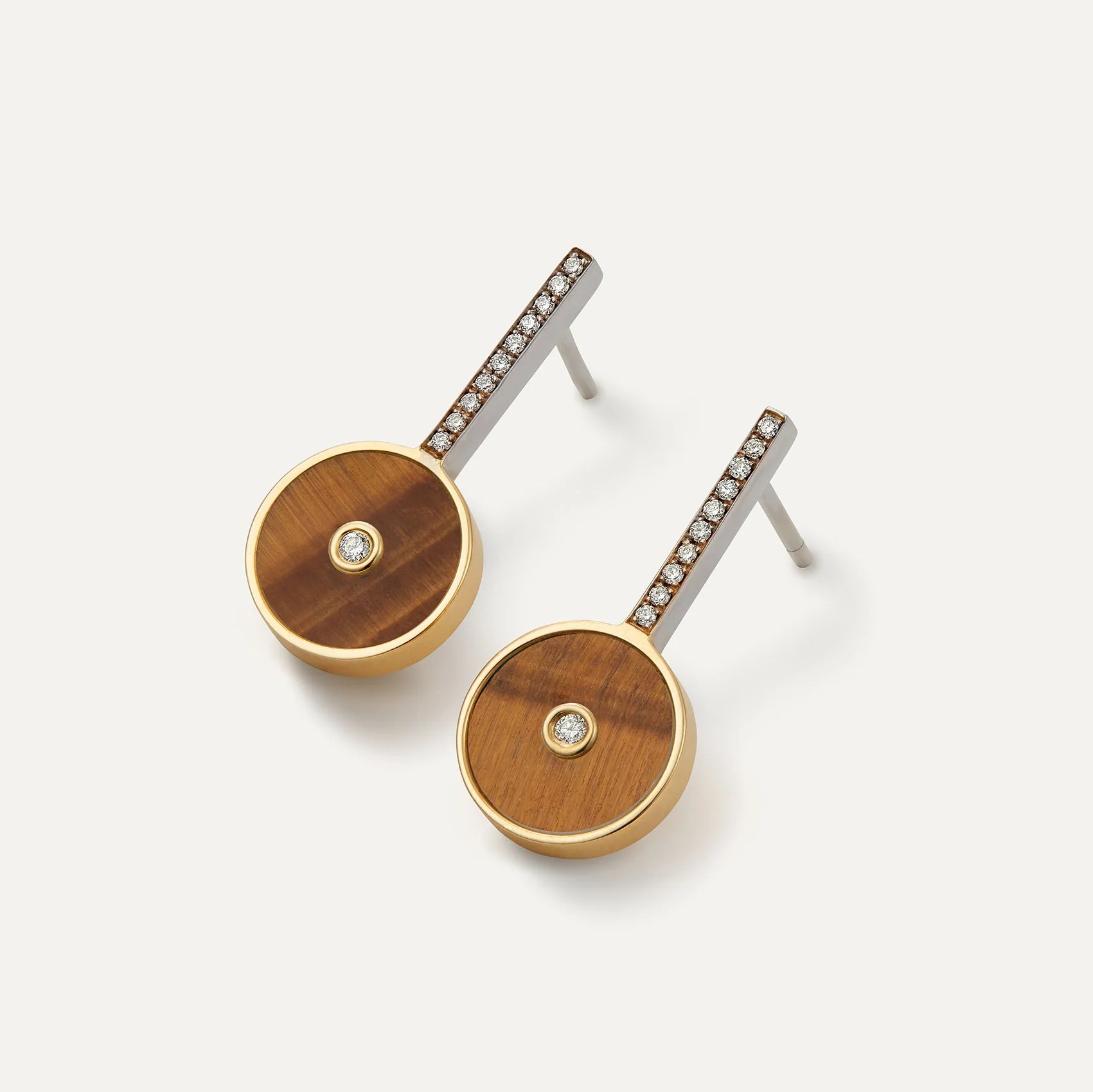 With a drop length designed for sophistication and comfort, the Déco earrings feel as good as they look. Crafted with Yellow and white Gold and adorned with Tiger Eye and Diamonds, they effortlessly transitions from casual to formal settings.