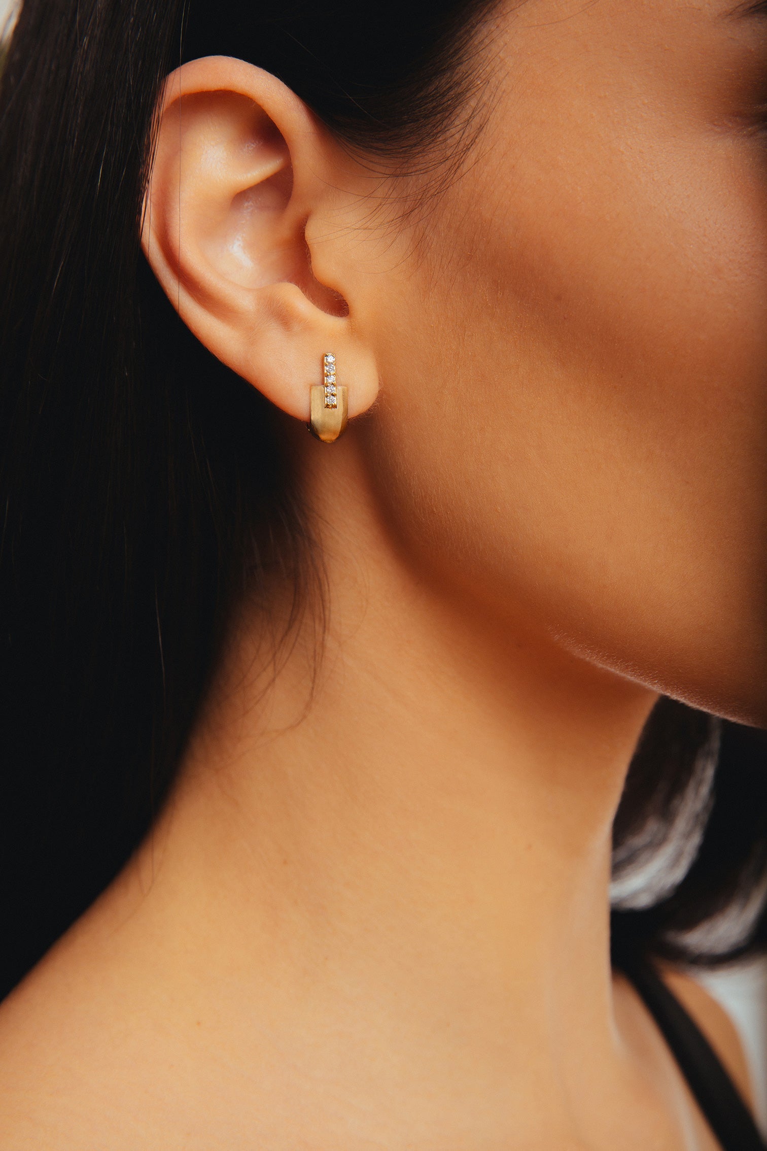 Crafted in 18K Gold and enhanced with Diamond pavé, the La Ligne earrings hug the ear perfectly, making them the ideal everyday jewel.