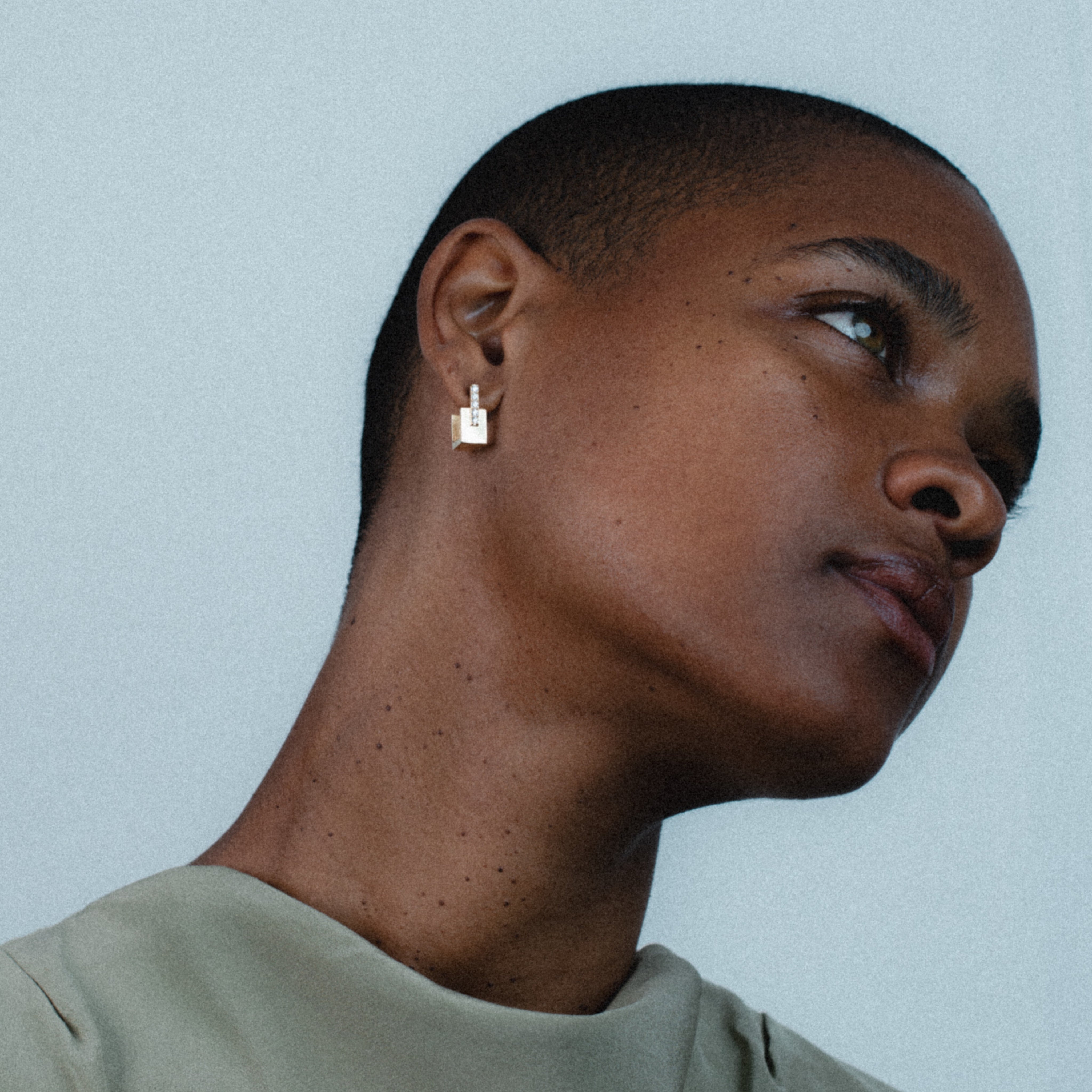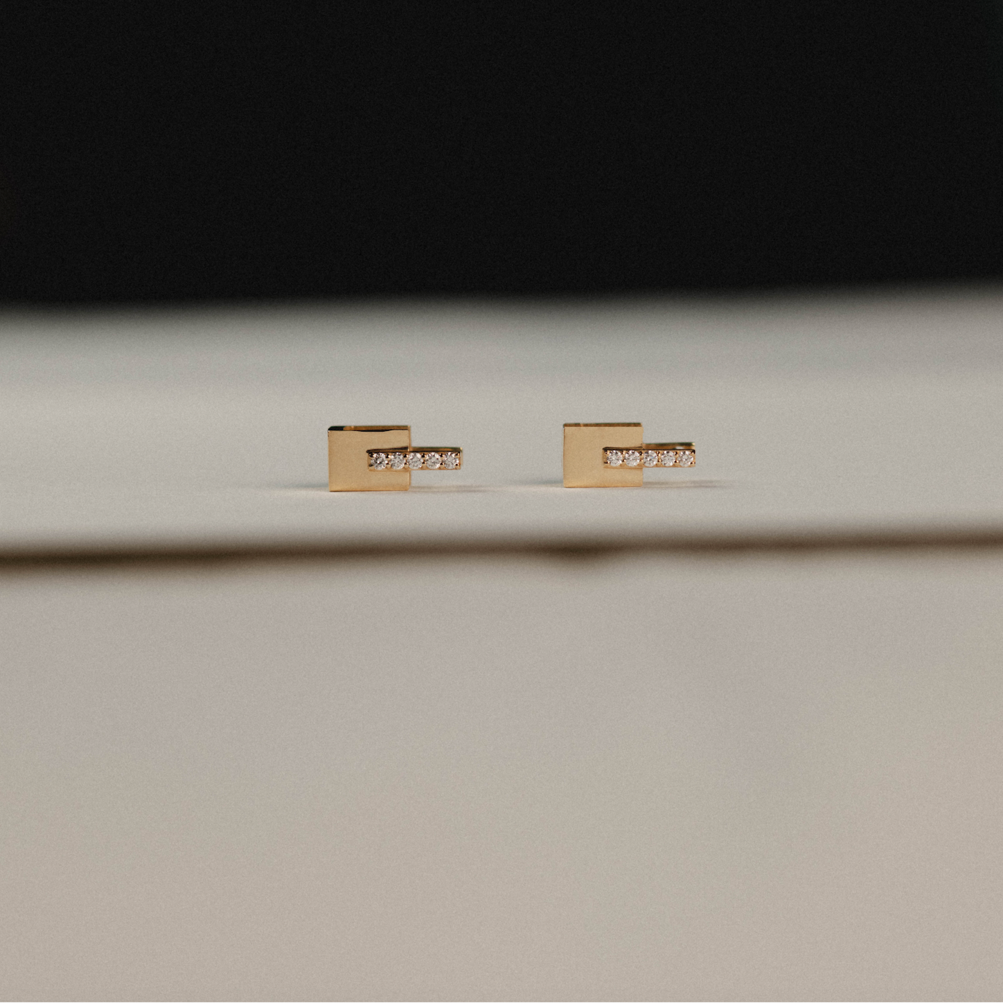Everyday sculptural earrings with just the right amount of boldness. La Ligne square earrings are crafted in 18K gold and enhanced with diamond pavé.