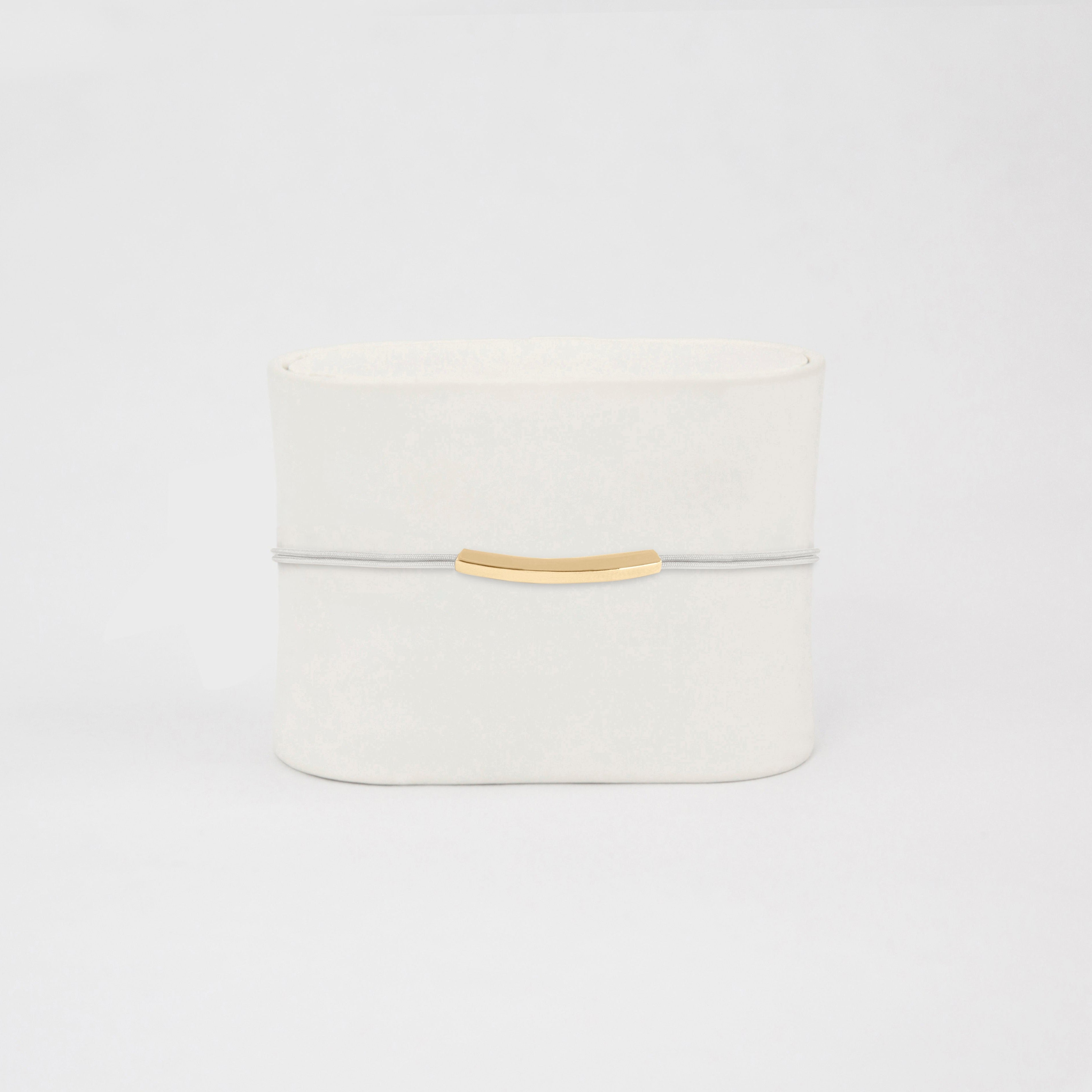 Half the length of its parent—the Inconditionnel N.1 — the Mini Inconditionnel features a curved square cylinder in 14K yellow gold, mounted on a cord. This adjustable bracelet enhances any wrist, bringing just the right touch of gold and a great dose of effortless elegance.