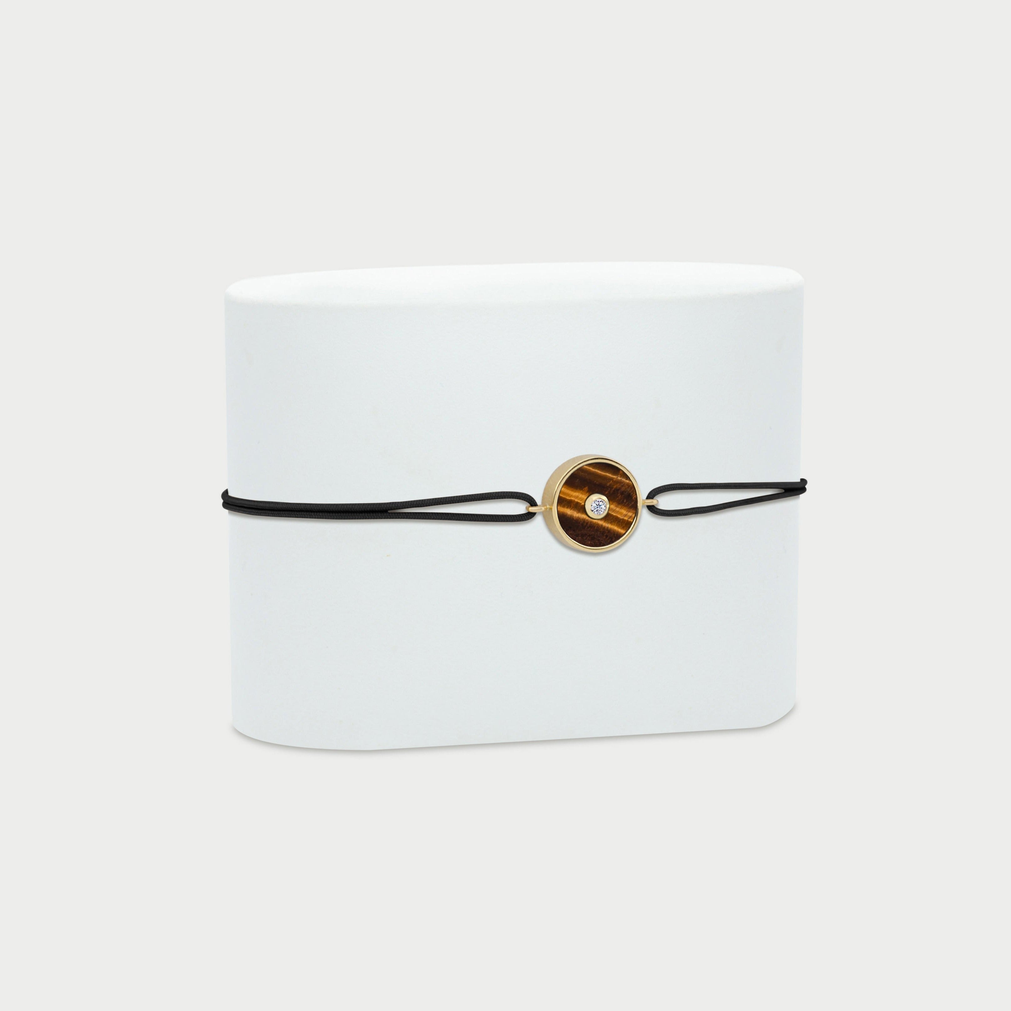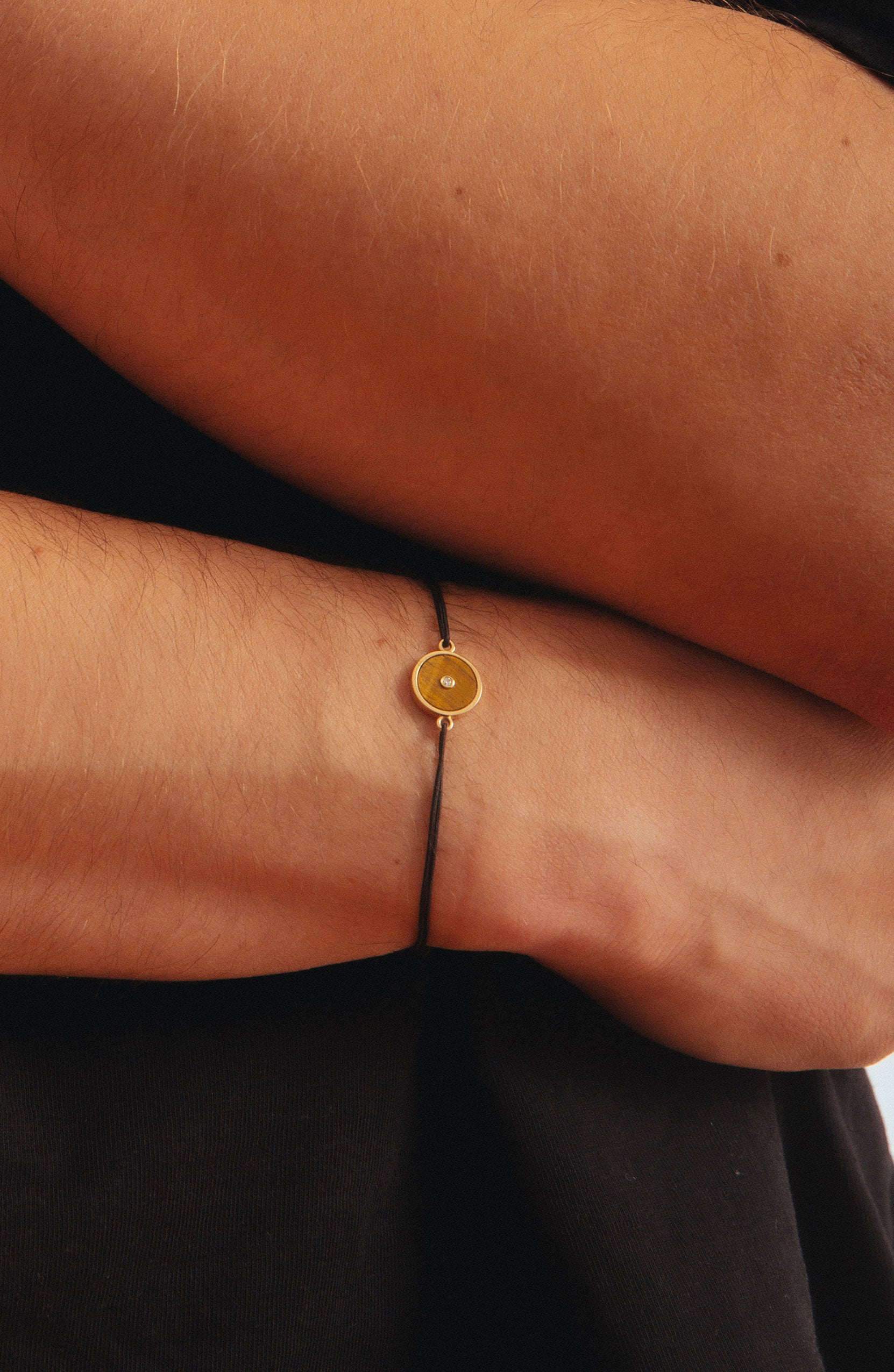 Inspired by the Art Déco era, the Bracelet N.1 is one of our signature pieces. Crafted with a Tiger Eye, known as the "stone of courage", and set in 14K Yellow Gold, this earthy-toned version features a central Diamond accent. Designed as a unisex, adjustable cord bracelet, it epitomizes both sophistication and versatility.